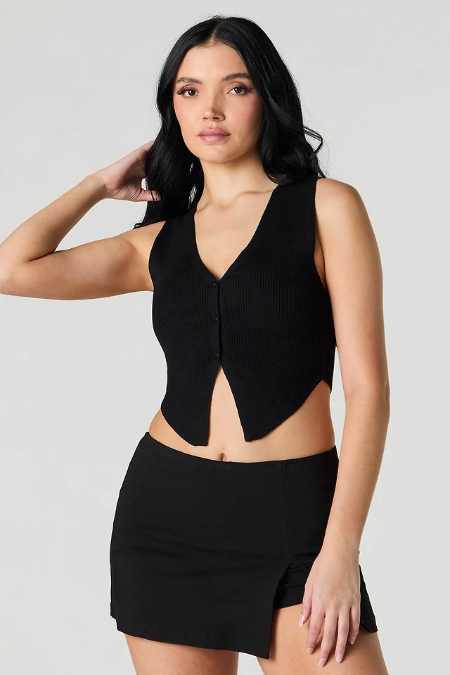 Camisole côtelée sans couture à encolure en V avec bonnets intégrés