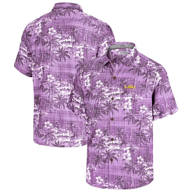 Chemise boutonnée Tommy Bahama violette pour homme, motif LSU Tigers Sport Coconut Point Palm Vista IslandZone