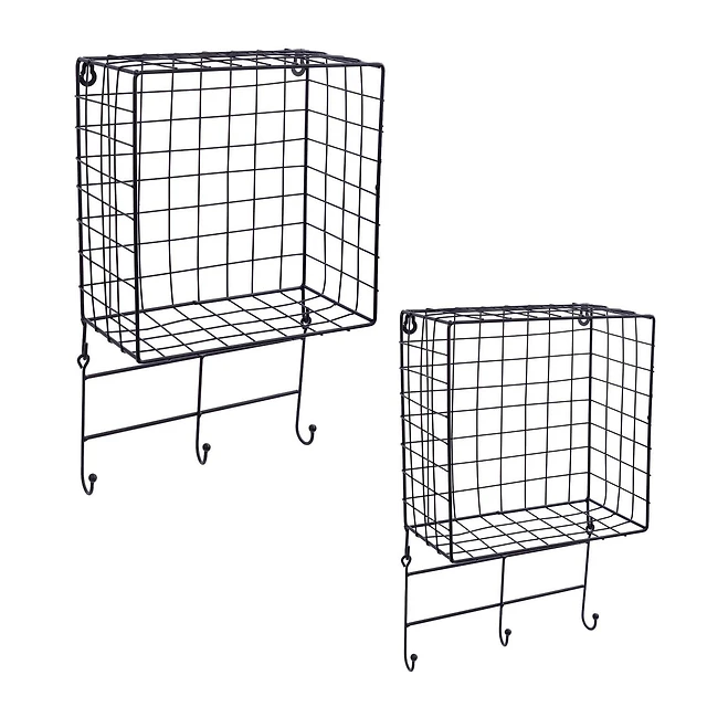 Truu Design, Étagères murales flottantes grillagées avec crochets, ensemble de 2