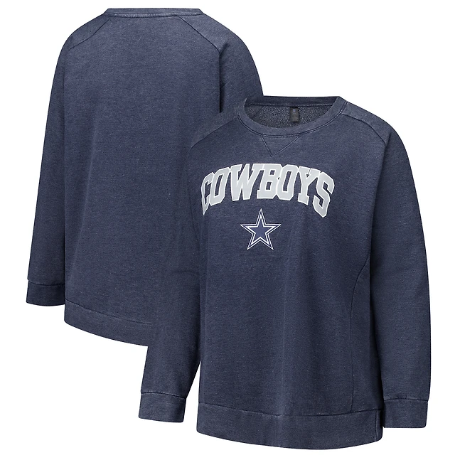 Sweat-shirt raglan délavé à l'acide pour femme, bleu marine, grande taille, des Cowboys de Dallas