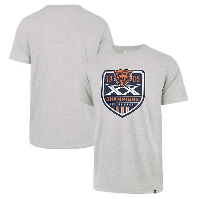 T-shirt gris pour homme « 47 Chicago Bears » le 40e anniversaire de Franklin, champions du Super Bowl XX