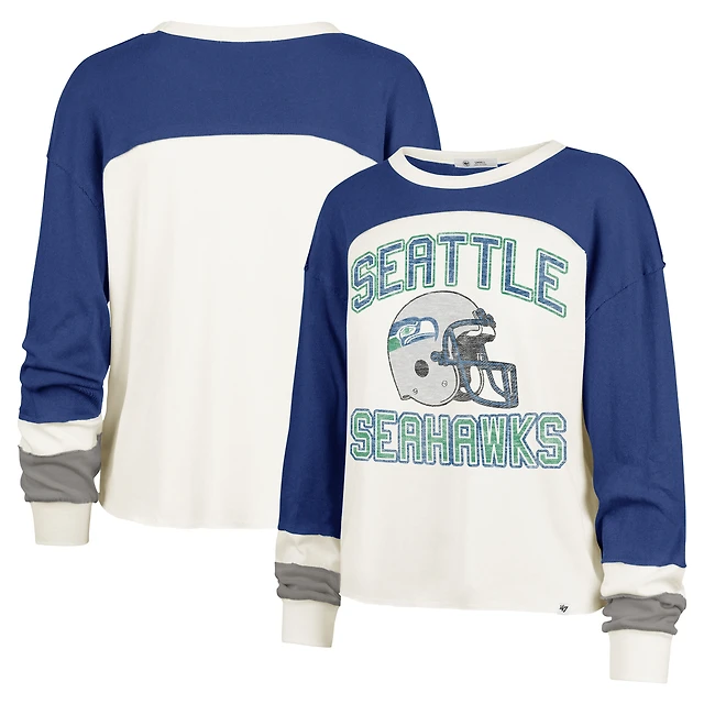 Haut court à manches longues raglan Double Header Curve '47 Cream pour femme des Seattle Seahawks