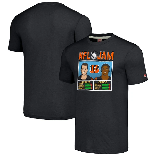 T-shirt noir à trois bandes NFL Jam pour homme avec logo Joe Burrow & Ja'Marr Chase des Bengals de Cincinnati