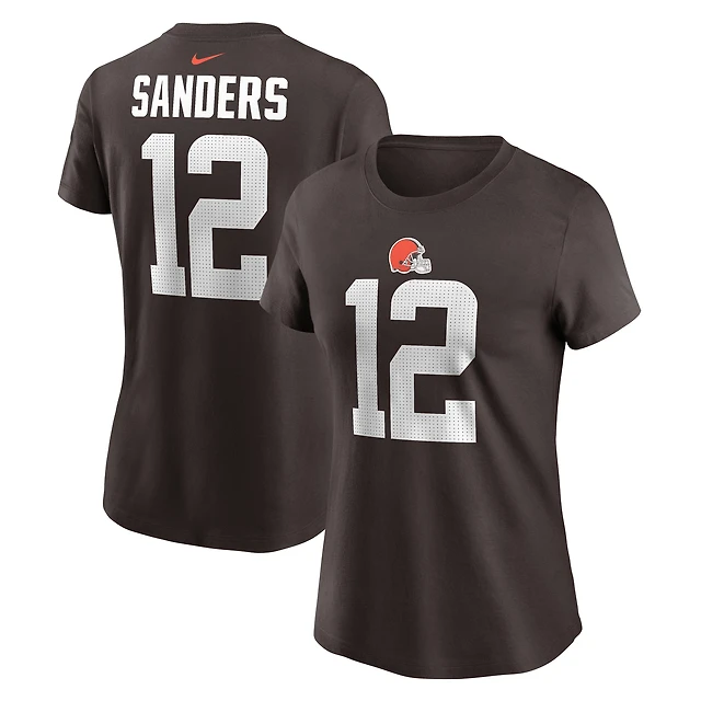 T-shirt Nike Shedeur Sanders Brown pour femme, nom et numéro de la draft NFL 2025 des Cleveland Browns