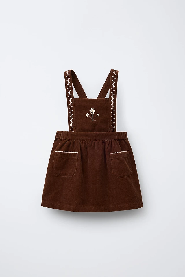 ROBE-SALOPETTE EN VELOURS CÔTELÉ BRODÉE