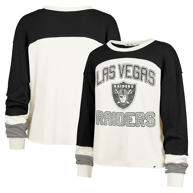 Haut court à manches longues raglan Double Header Curve '47 Cream pour femme des Las Vegas Raiders