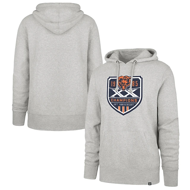Sweat à capuche gris pour homme « 47 Chicago Bears Super Bowl XX Champions 40e anniversaire Imprint Headline