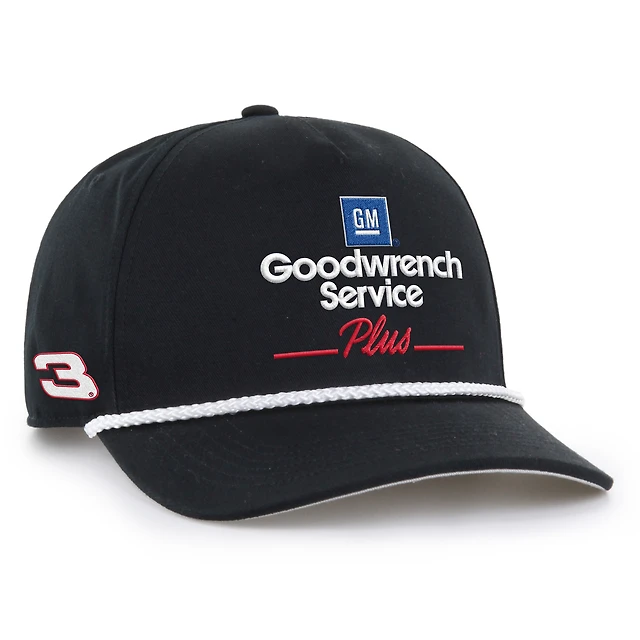 Casquette ajustable noire Richard Childress Racing Goodwrench Service Plus pour homme, modèle 1947, avec corde d'attelage