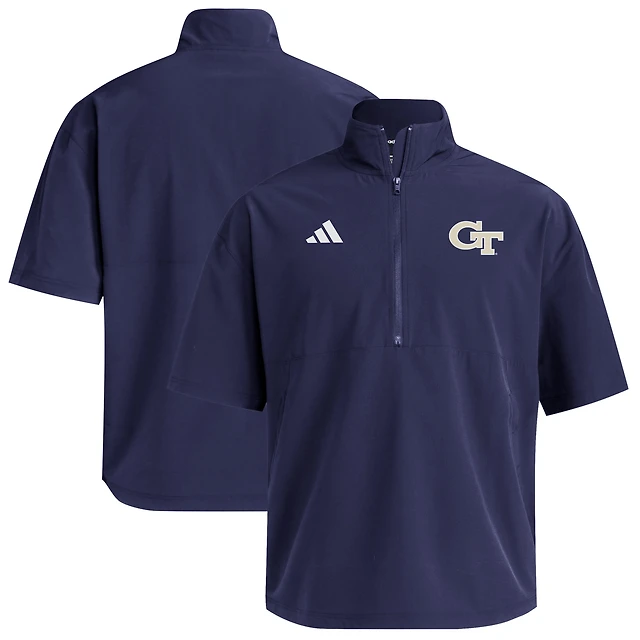 Pull à manches courtes tissé zippé quart de tour adidas bleu marine Georgia Tech Yellow Jackets pour homme