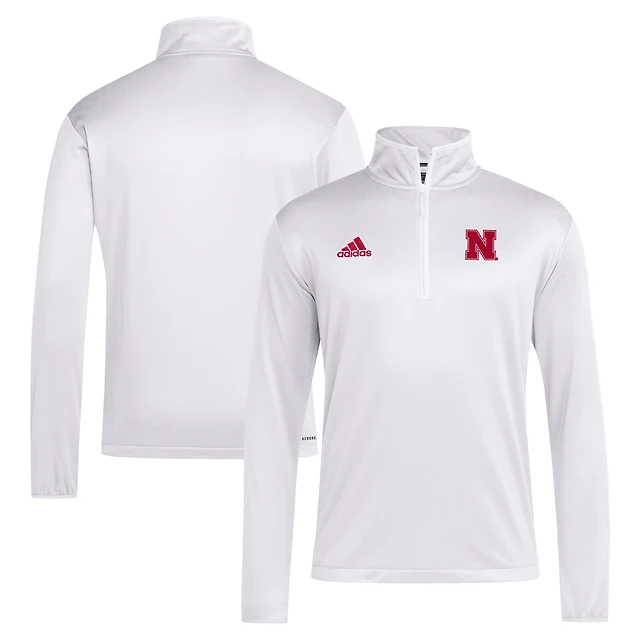 Haut adidas Nebraska Huskers Coaches Sideline à quart de zip pour hommes blanc