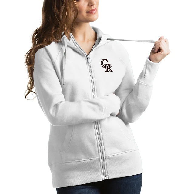 Sweat à capuche entièrement zippé Antigua White Colorado Rockies Victory pour femme