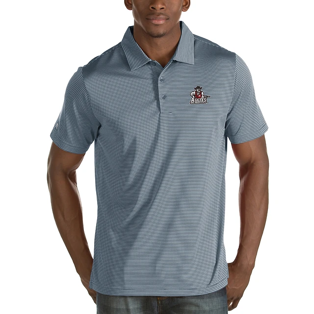 Polo rayé Quest pour homme des Aggies de l'État du Nouveau-Mexique, en jersey, Antigua Steel