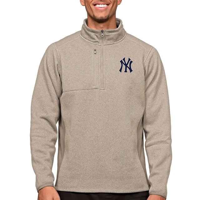 Pull à enfiler quart de zip pour homme Antigua Oatmeal New York Yankees