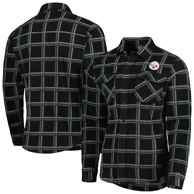 Veste-chemise boutonnée en flanelle noire Antigua pour homme des Steelers de Pittsburgh