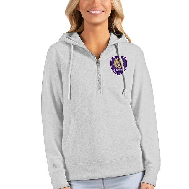 Sweat à capuche demi-zippé Antigua Heather Grey Orlando City SC Logo Action pour femme