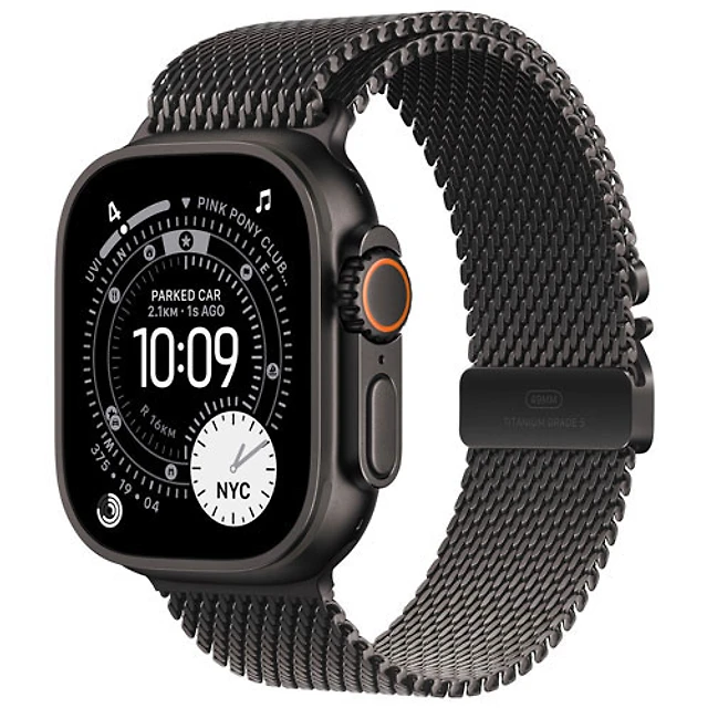 Apple Watch Series 11 (GPS + Cellulaire) avec boîtier de 46 mm en titane or et bracelet milanais or avec Rogers - Petit/Moyen - Financement mensuel