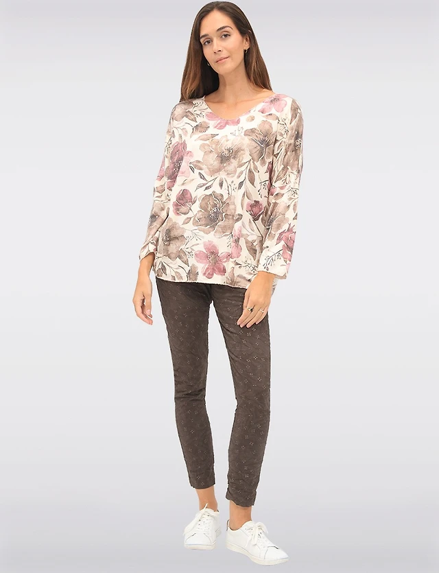 Haut Chic Doux Extensible à Fleurs avec Manches Longues Ajustables par Froccella