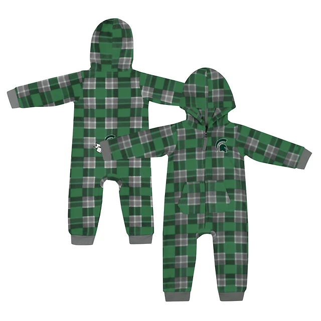 Sweat à capuche carreaux et fermeture éclair complète pour bébé Colosseum vert Michigan State Spartans manches longues