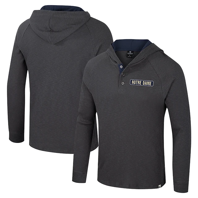 T-shirt à capuche manches longues Henley pour homme Colosseum Charcoal Notre Dame Fighting Irish Dujour Ralgan