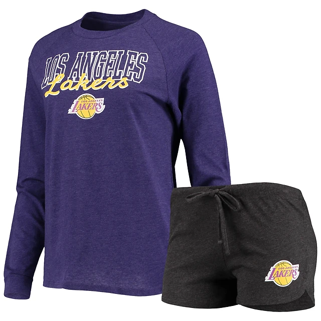 Ensemble de nuit grande taille pour femme Concepts Sport Gold/Heather Grey Los Angeles Lakers, haut à manches longues et short