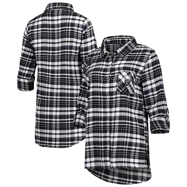Chemise de nuit à carreaux et boutons pour femme Concepts Sport Noir Las Vegas Raiders Mainstay