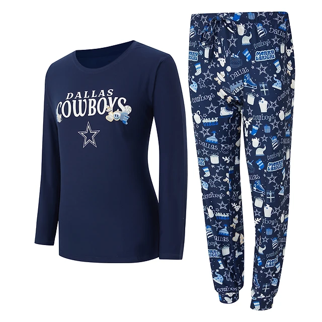 Ensemble de nuit pour femme College Concepts bleu marine Dallas Cowboys avec t-shirt à manches longues et pantalon couleur marron