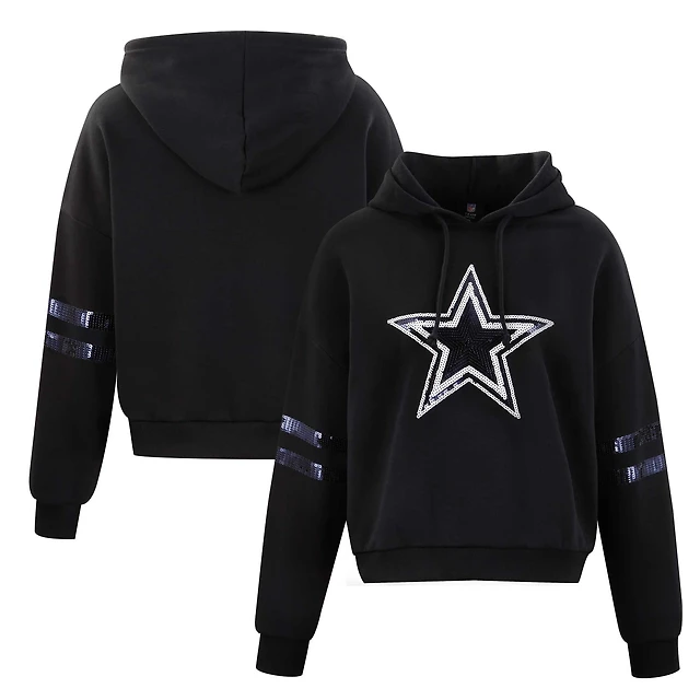 Sweat à capuche court paillettes pour femme Cuce Black Dallas Cowboys