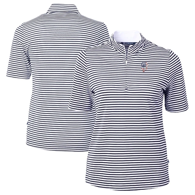 Pull-over zippé quart de tour en piqué écologique recyclé à rayures et logo Virtue des Giants San Francisco pour femme, bleu marine, Cutter & Buck