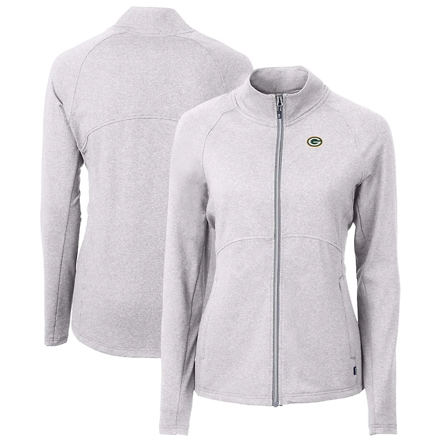 Veste zippée intégrale en tricot recyclé Adapt Eco Knit des Packers de Green Bay pour femme, gris chiné, Cutter & Buck