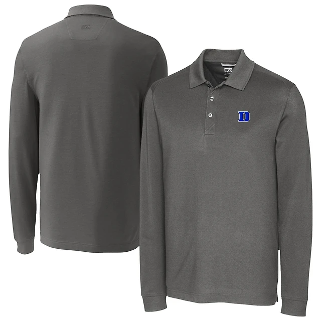 Polo à manches longues Advantage Eco Tri-Blend pour homme, gris, Cutter & Buck, Duke Blue Devils