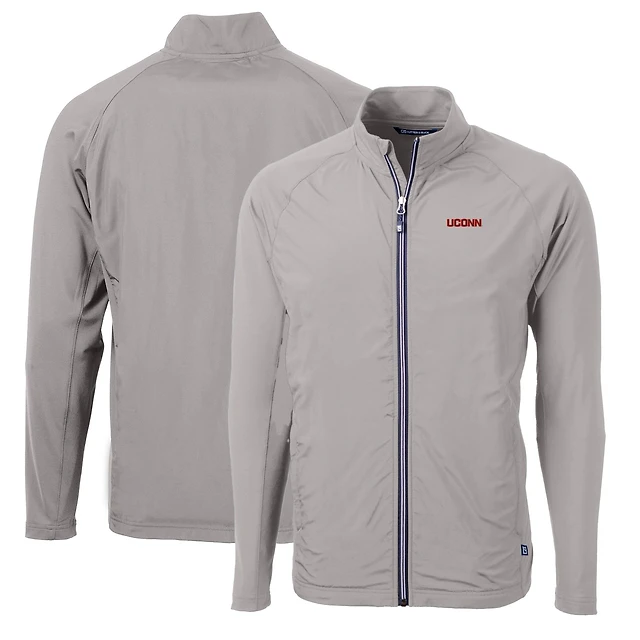Veste hybride en tricot écologique recyclé à fermeture éclair intégrale pour homme, modèle Cutter & Buck gris des Huskies de l'UConn, taille grande et