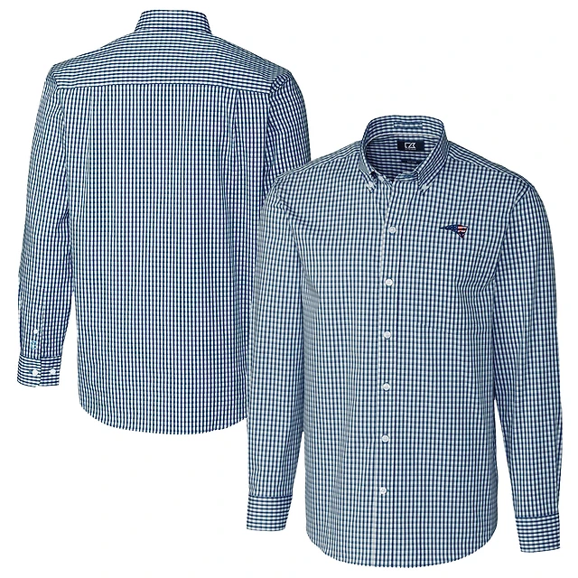 Chemise boutonnée à manches longues pour homme, bleu marine, coupe Cutter & Buck, New England Patriots, facile d'entretien, extensible, vichy, grande taille