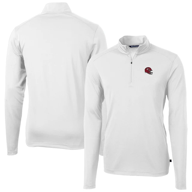 Pull-over zippé quart de tour en piqué écologique recyclé pour homme, blanc, avec casque des Chiefs Kansas City, Cutter & Buck