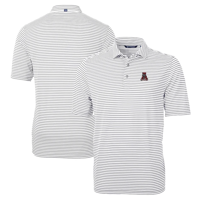 Polo recyclé à rayures et piqué écologique pour homme, gris, Cutter & Buck, Utah Utes, avec logo de l'équipe, Virtue