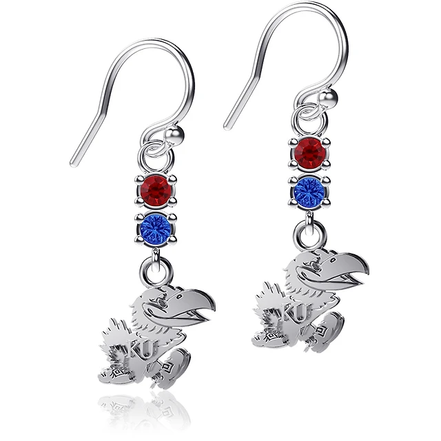 Dayna Designs Boucles d'oreilles argentées avec logo de l'équipe des Jayhawks du Kansas