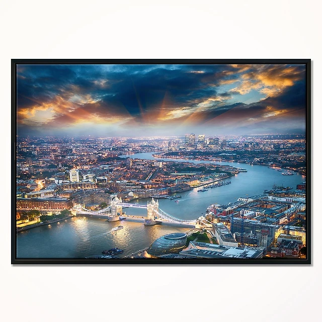 Design Art Vue Aérienne De Londres Au Crépuscule Sur Toile Encadrée