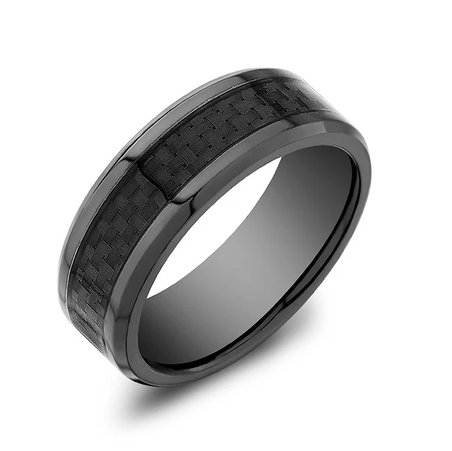 Jonc Pour Homme En Tungstène Avec Fibre De Carbone Noire – 6mm. Color: noir | Doucet Latendresse