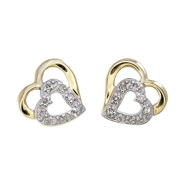 Boucles d'oreilles en coeur pour femme - Or jaune 10K et diamants 2pts. Color: jaune | Doucet Latendresse