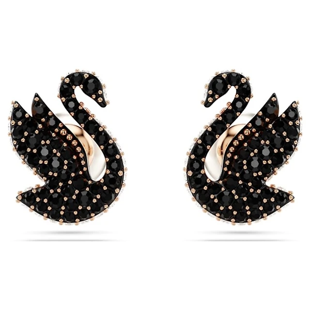 Clous d'oreilles Swarovski SwanCygne, Noires, Placage de ton or rosé. Color: rose | Doucet Latendresse