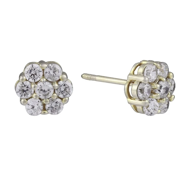 Boucles d'oreilles en fleur avec zircons cubique- Or jaune 10K. Color: jaune | Doucet Latendresse