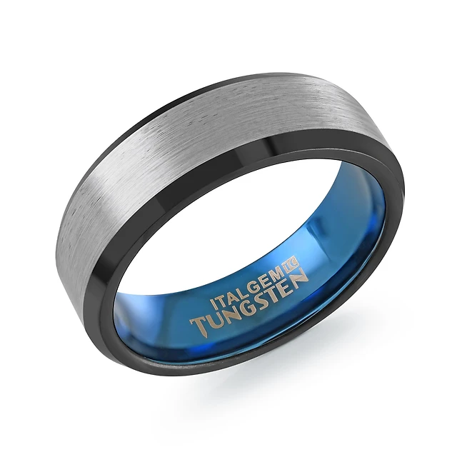 Jonc Pour Homme En Tungstène Noir Et Bleu À Centre Brossé – 7mm | Doucet Latendresse