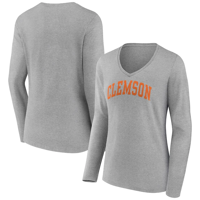 T-shirt à manches longues et col en V Fanatics Heather Grey Clemson Tigers Basic Arch pour femmes