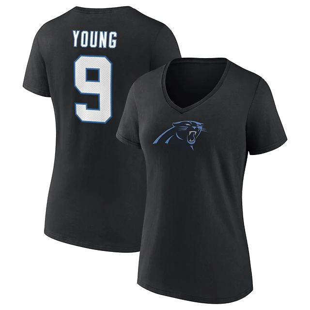 Fanatics Bryce Young Black Carolina Panthers Icon Name & Number T-shirt à col en V pour femmes