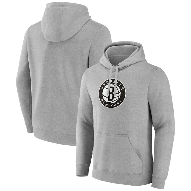 Sweat à capuche avec logo principal des Brooklyn Nets Fanatics gris chiné pour hommes
