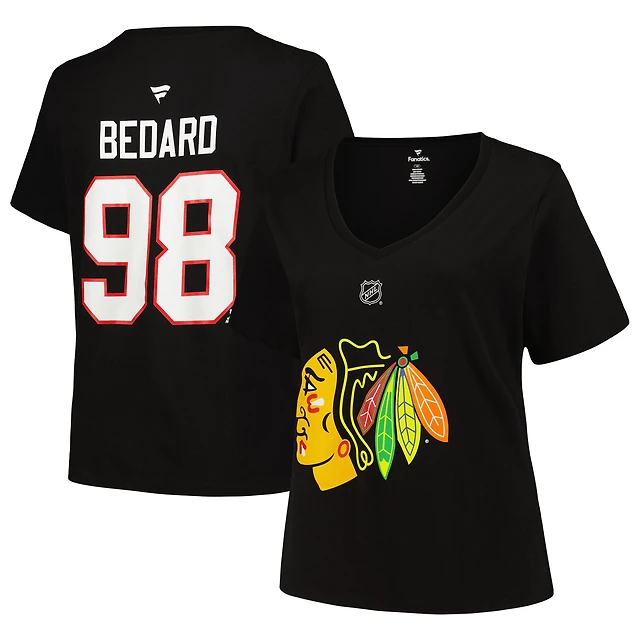 T-shirt noir avec nom et numéro grande taille des Blackhawks de Chicago Fanatics Connor Bedard pour femmes