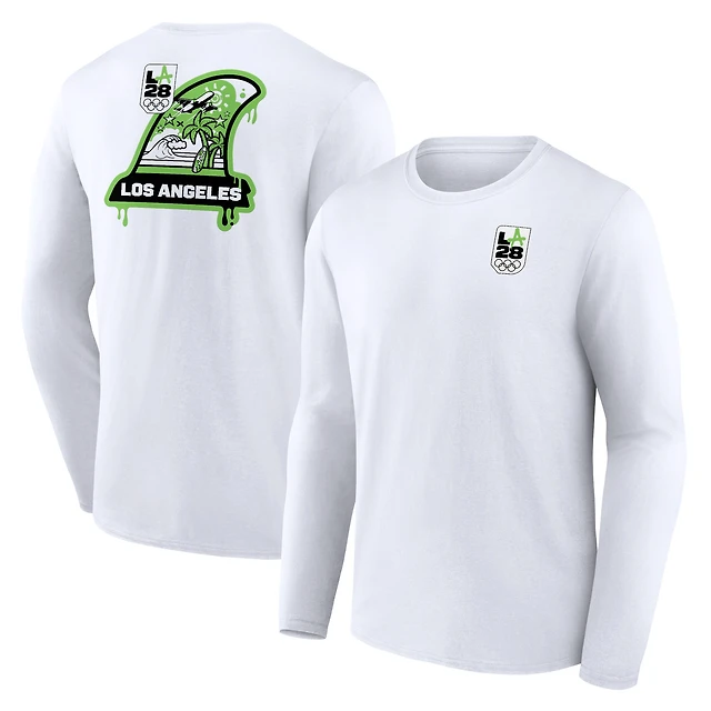 T-shirt blanc à manches longues Fanatics LA28 Neon Tags pour hommes
