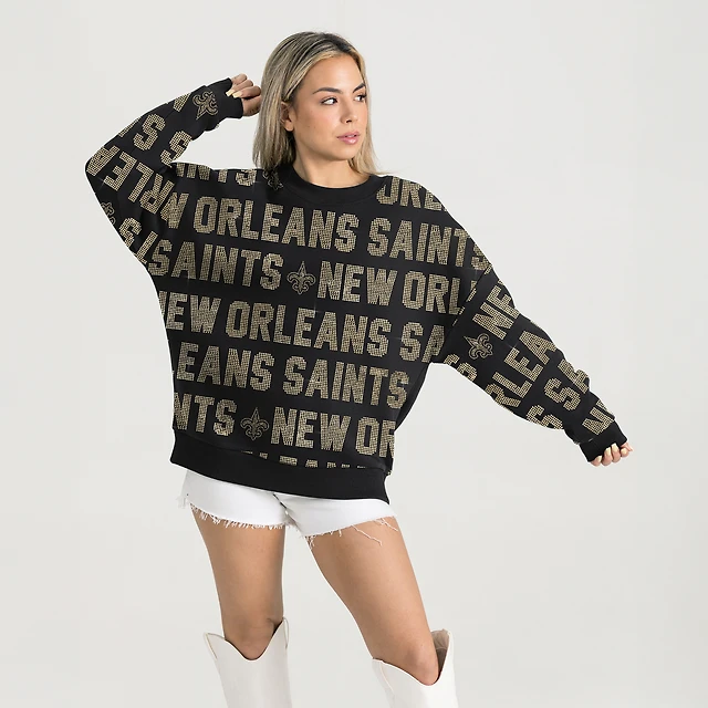 Sweat-shirt noir décontracté à épaules tombantes et texte strass Hype Era pour femme Gameday Couture des Saints de la Nouvelle-Orléans