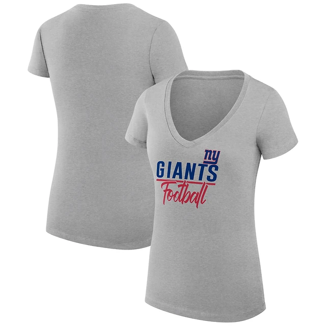 T-shirt léger à col en V et coupe ultra-ajustée G-III 4Her par Carl Banks pour femme, gris chiné, avec logo filigrane des Giants de New York