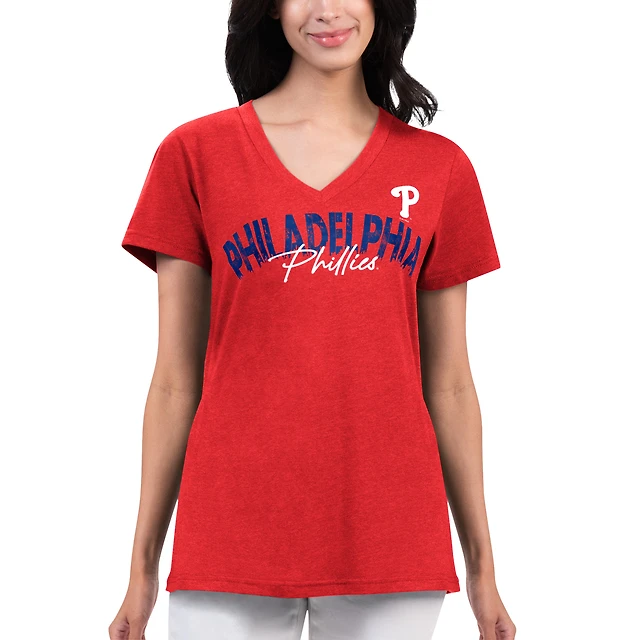 T-shirt rouge à col en V G-III Sports by Carl Banks pour femmes des Phillies de Philadelphie