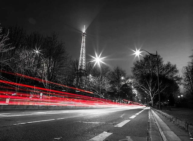 Assaf Frank - Strip lights on a road next to the Eiffel tower